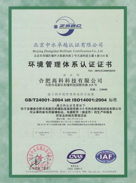 环境管理体系认证证书