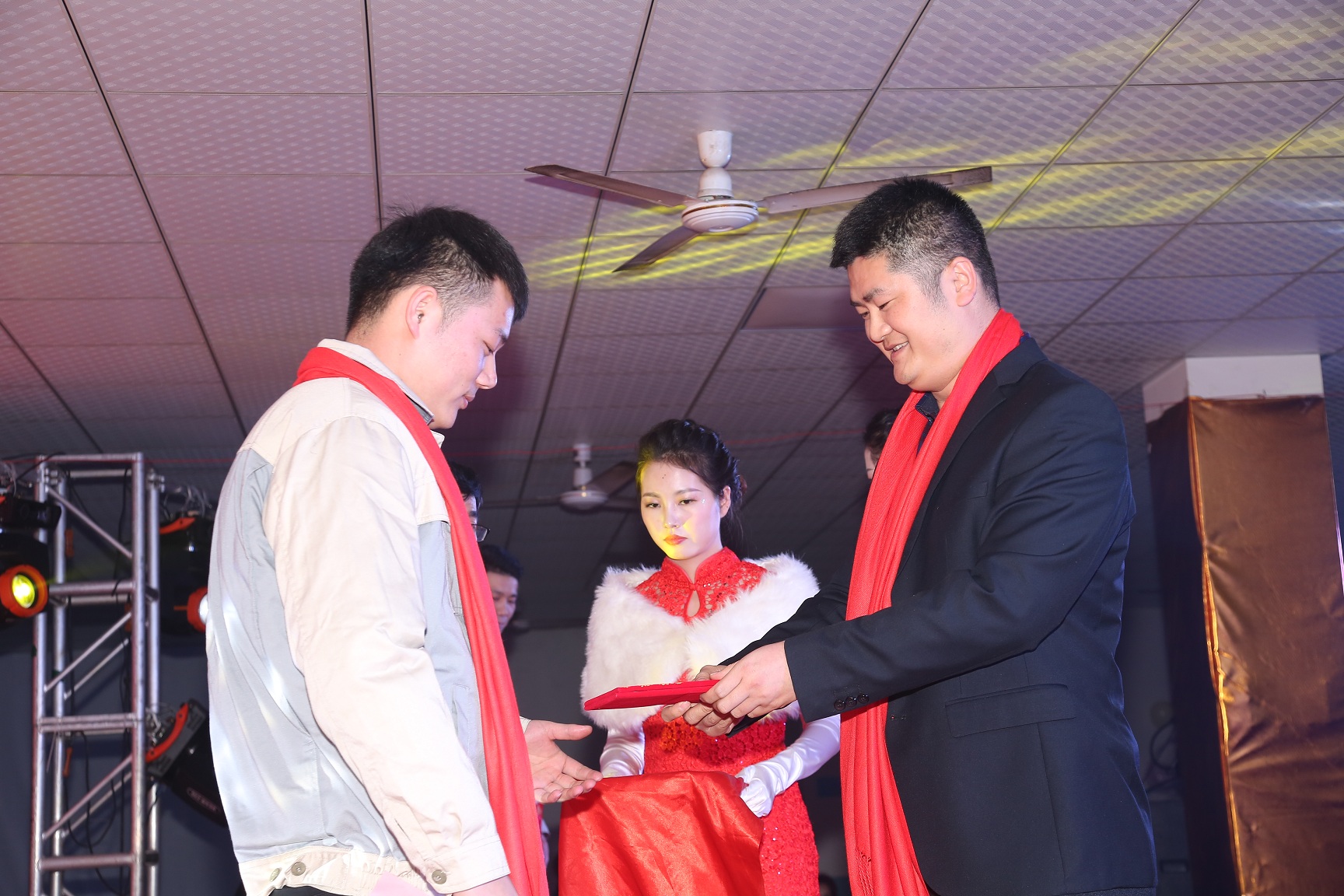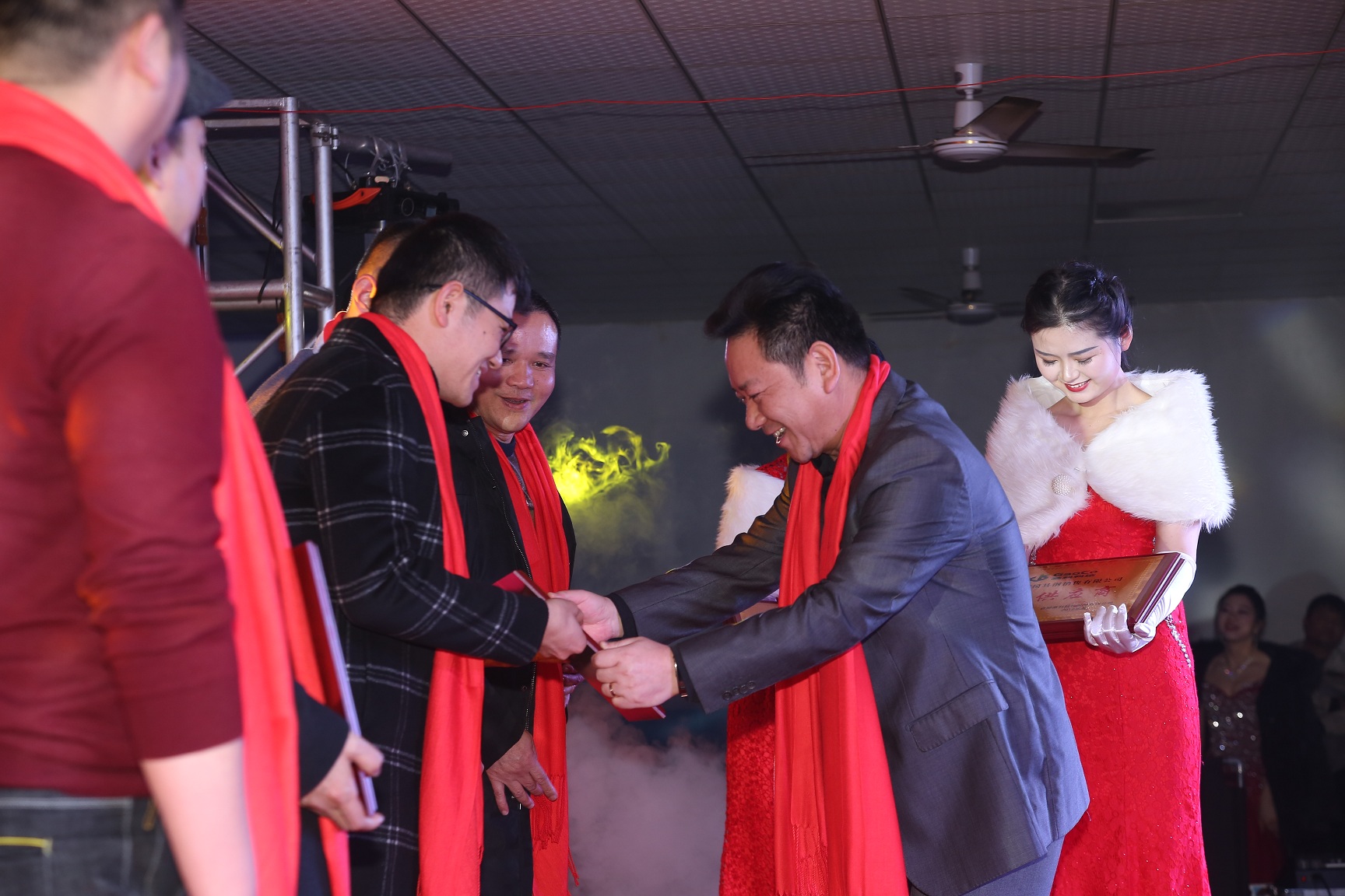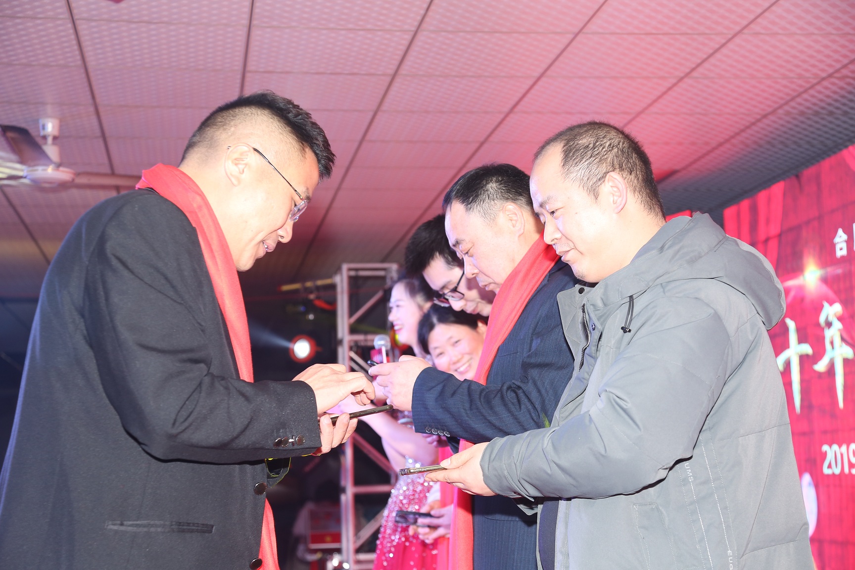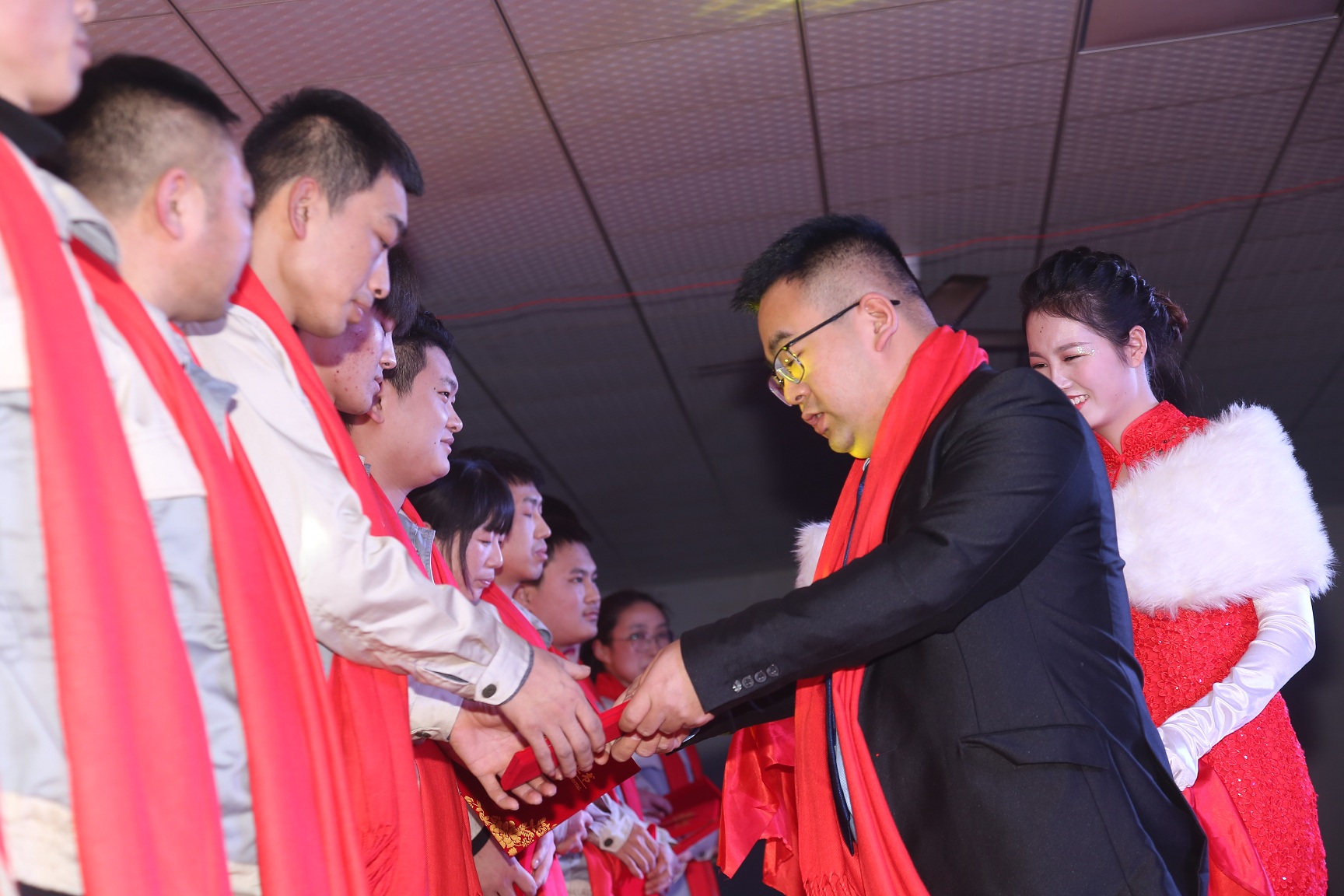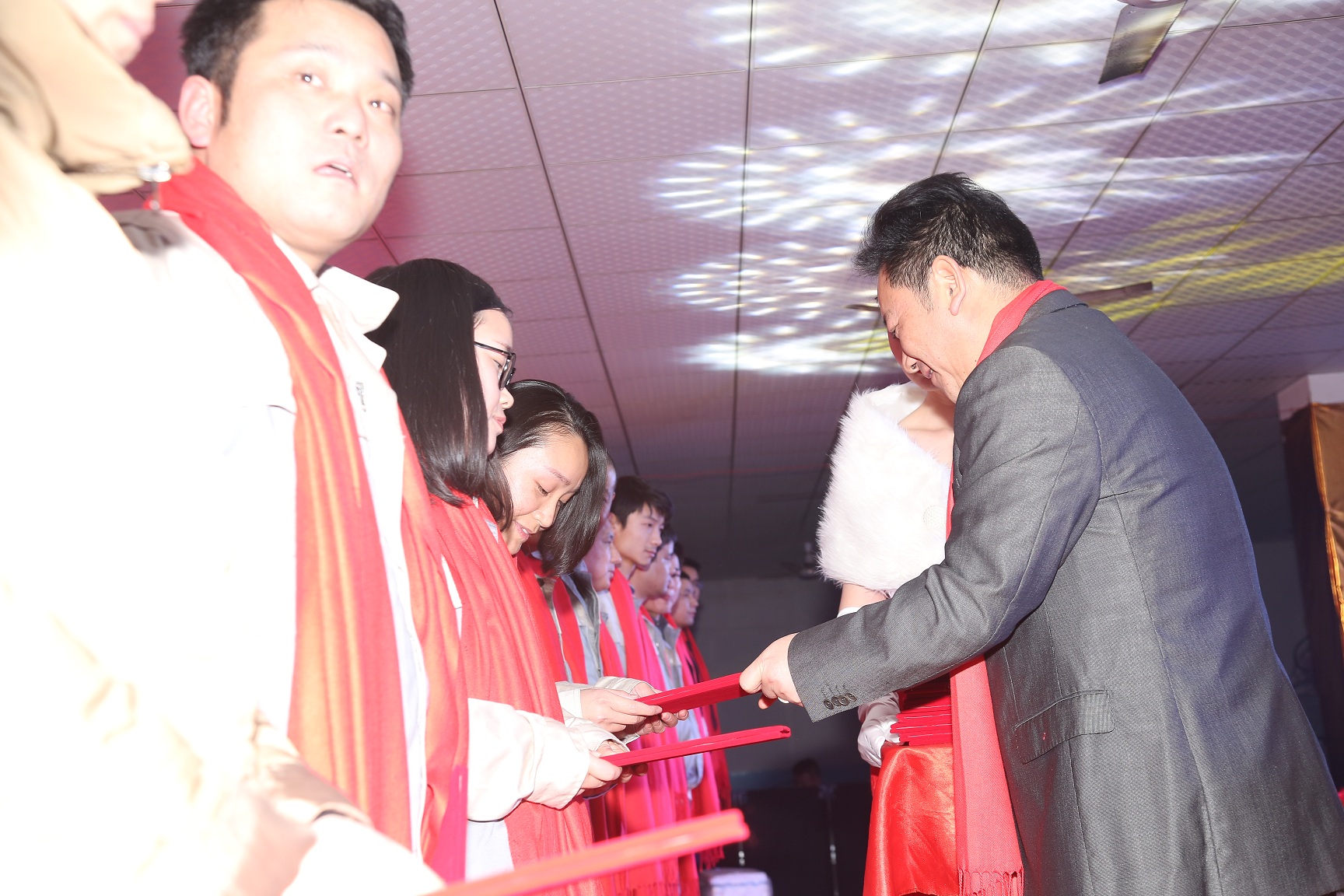 参加晚会的人员有总经办的胡董事长、赵总经理、陈副总经理、合肥高科十名优秀供应商代表,以及公司各部门领导、各驻外办事处、全体员工参加了本次年会。
