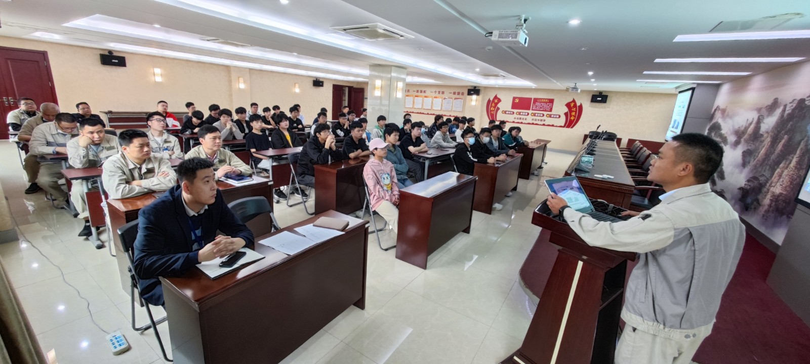 誓师大会,由各事业部选拔出两名优秀的技能和管理双人才做为导师,并颁发聘书和工服,和各自的学员们拍照合影留念。