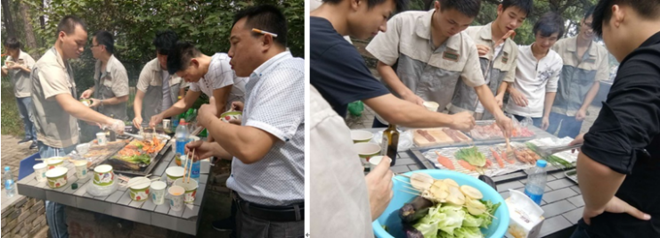 按照此次活动的预先安排 10:00部门人员在园内烧烤点集合,组织趣味烧烤大比拼。大家开始分工起来,择菜的择菜,配料的配料,各司其职,各组大厨纷纷闪亮登场,一较高下,好不热闹……